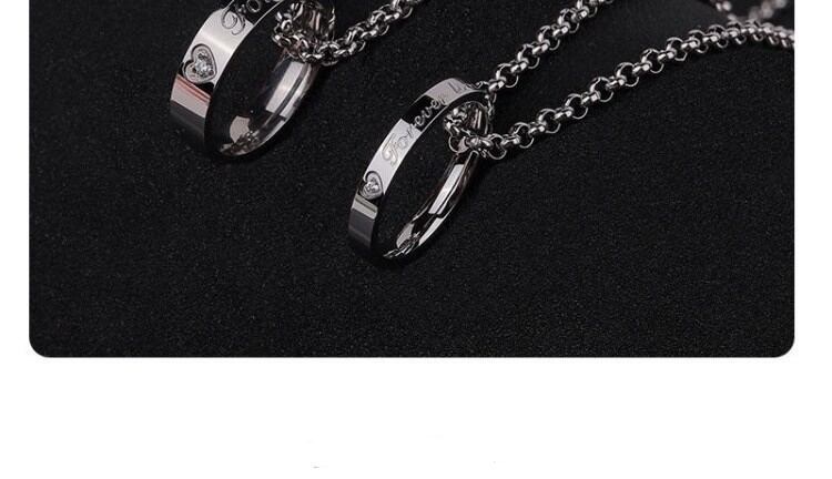 指輪の錠の掛け金は紳士の気持ちを拘束する。彼女が彼氏の約束の錠としてクリスマスの時に男性の首にネックレスの鎖を巻いて、カップルがペンダントジュエリーチェーンをペアで付けています