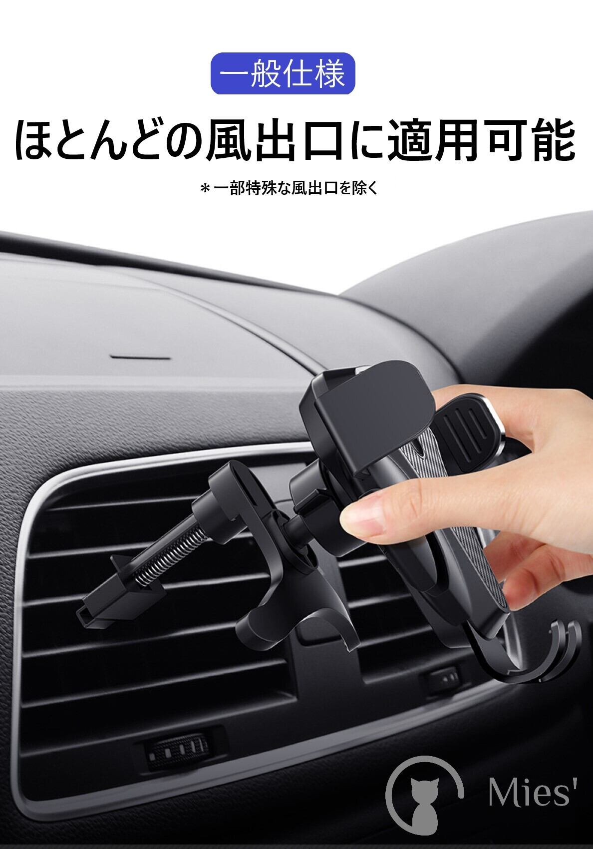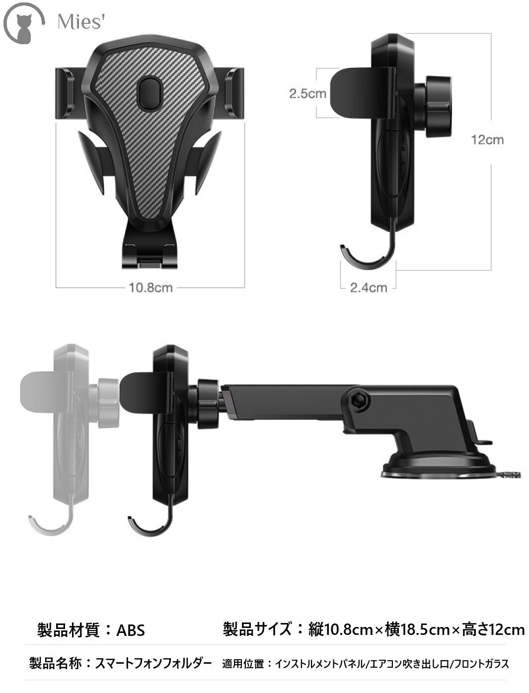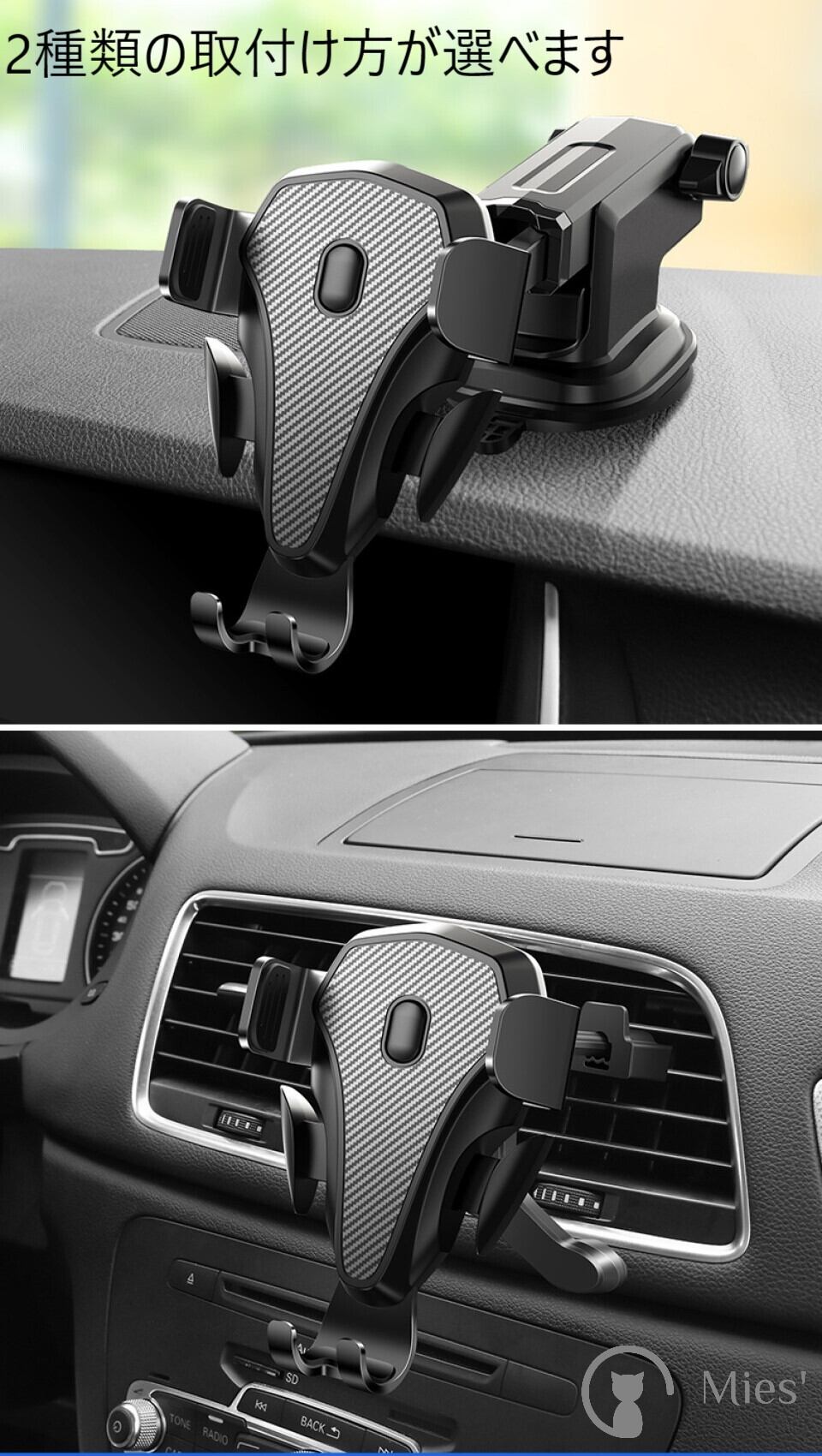 【1台2役 2WAY ホルダー】吹き出し口式だけではなく、真空で強力なゲル吸盤式として、どこでも簡単装着できます。超強力真空吸盤と三点支持構造で運転中もしっかり固定でき、落下の心配無し。